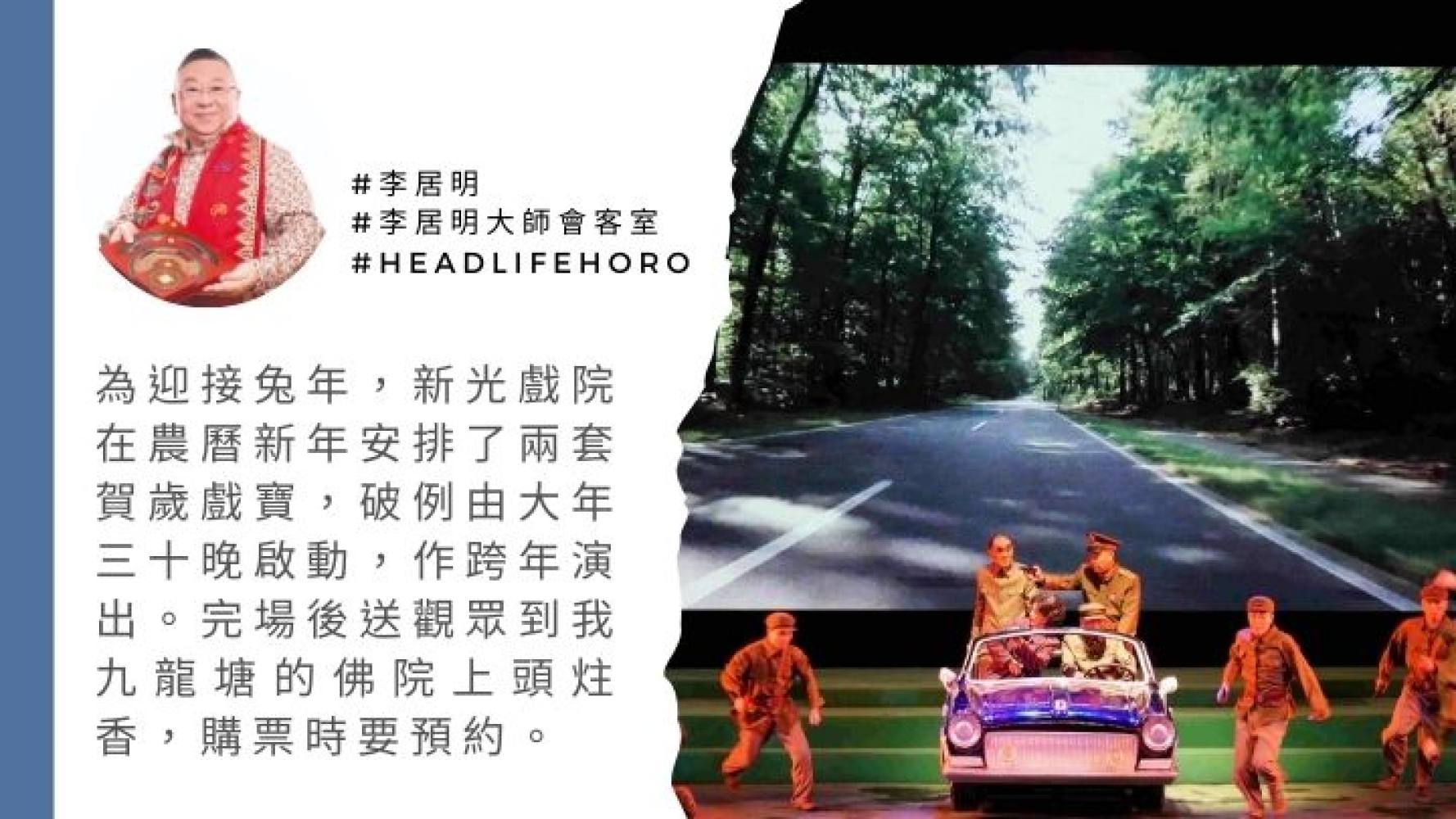 兔年年初八上演《相如追夢》,是另一個激情。這是我與蓋鳴輝合作的當年戲寶,觀眾一再要求重演,終於崔護重來。今年不能不看的兩套賀歲粵劇,即日預售啦!TVB《李居明兔年運程》將於明日(1月15日)23:59播映,記得收看!