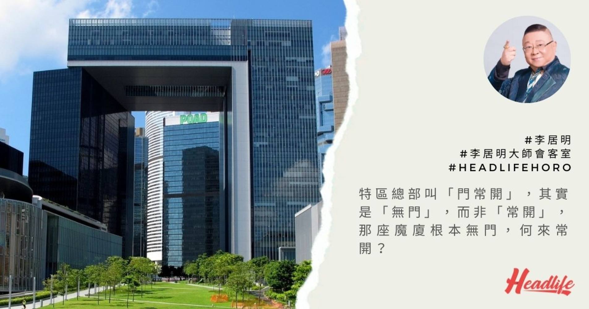 特區總部叫「門常開」,其實是「無門」,而非「常開」,那座魔廈根本無門,何來常開?中空建築舞乃「無心」之圖騰,「門常開」是「無中心」建築,形如胯下被辱之意,政府官員全無權威可言,能令香港好運嗎?