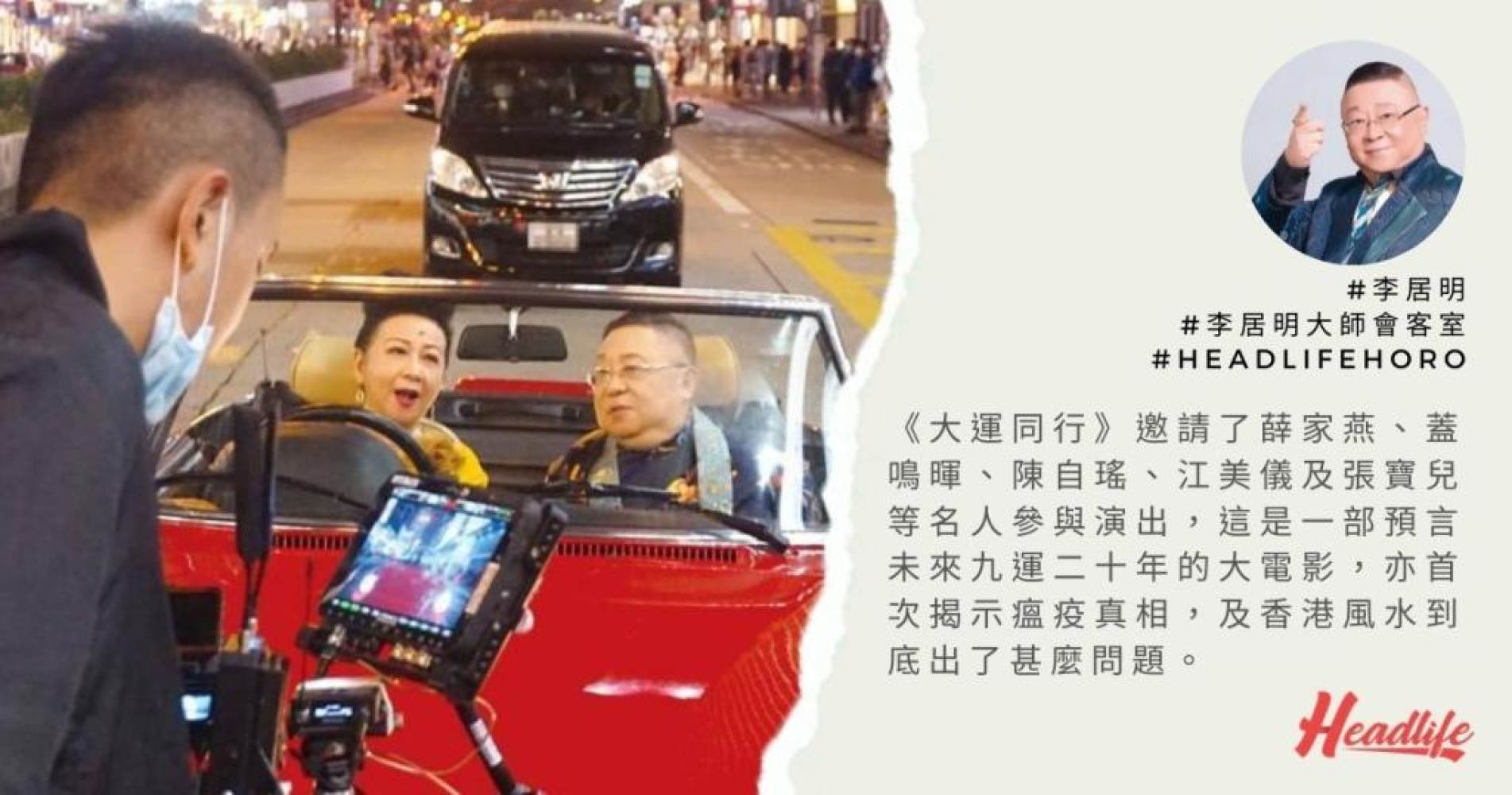《大運同行》邀請了薛家燕、蓋鳴暉、陳自瑤、江美儀、敖嘉年、胡諾言、傅嘉莉及張寶兒等名人參與演出,這是一部預言未來九運二十年的大電影,亦首次揭示瘟疫真相,以及香港風水到底出了甚麼問題。但我相信,只要香港的維多利亞海港還是清澈,代表香港仍是福地,港人要「忍耐」和「處變不驚」便能見到曙光!