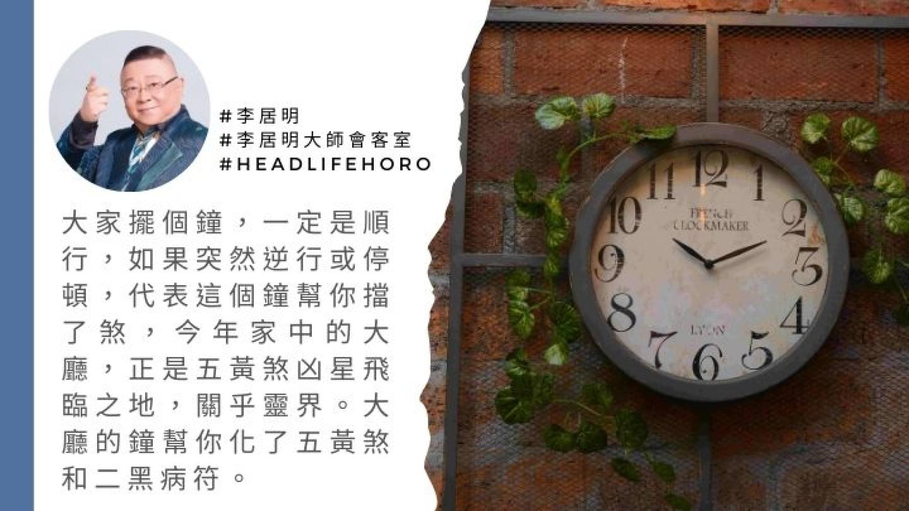 從風水角度,家中有不正常及不理想的磁場,會令你家的鐘忽然快了、慢了或停頓,甚至是逆行!大家擺個鐘,一定是順行,如果突然逆行或停頓,代表這個鐘幫你擋了煞,今年家中的大廳,正是五黃煞凶星飛臨之地,關乎靈界。大廳的鐘幫你化了五黃煞和二黑病符。