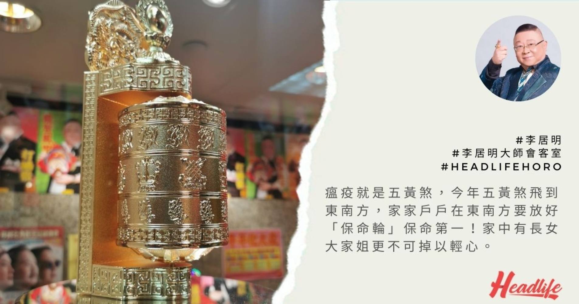 經歷2020年世紀瘟疫,人人當更明白「五黃」、「二黑」的凶險!由於九運火毒令二五土煞變本加厲,嚴重影響屬金的肺部及呼吸系統健康,故牛年的東南、正北兩個方位務必加強「金」的力量以保平安。先找出客廳、睡房、書房、辦公室的東南方和正北方,最簡單的方法是掛六銅錢或八銅錢。而術家更會用敲銅鑼或銅鐘來化二五土煞,其中以落地大座鐘最好,並以午後三時至七時「金」最旺的時辰轉動「保命輪」最具效應。