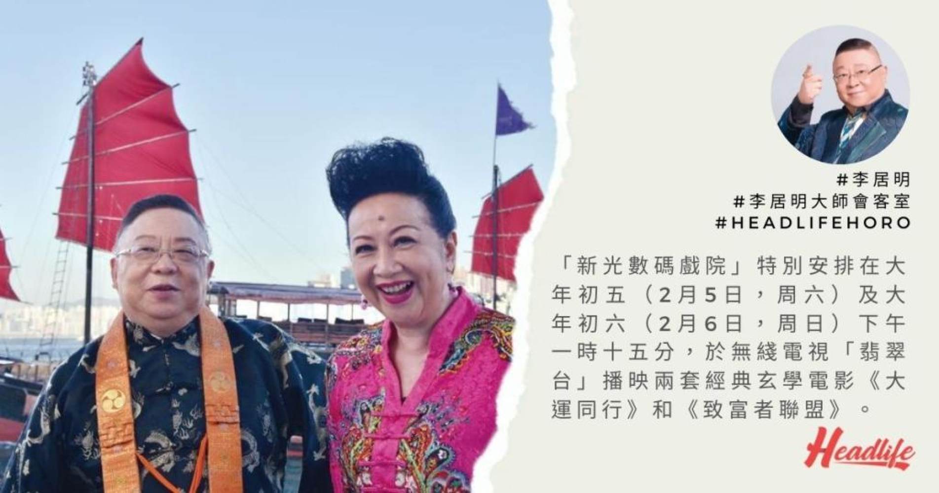 今年過年,由於限聚令期間,戲院停開,人人過年只能待在家中,為使全港觀眾可以看到好電影,「新光數碼戲院」特別安排在大年初五(2月5日,周六)及大年初六(2月6日,周日)下午一時十五分,於無綫電視「翡翠台」播映兩套經典玄學電影《大運同行》和《致富者聯盟》,myTV SUPER七天綫上重溫,以酬觀眾對新光戲院大劇場之支持。