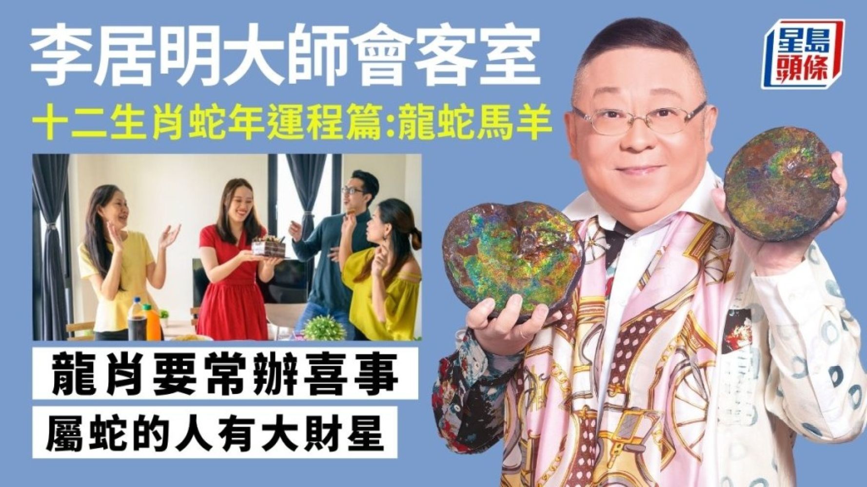 大家要向龍人學習,小病是福,開心是一天,不開心也是一天,所以要經常辦喜事,叫做「一喜化三災」。比如生日宴、家人朋友聚會,公司同事飲茶也算。不開心的事無法控制,不如自己創造多一點開心的事,令自己開心好運一點!視帝黎耀祥屬龍,明年繼續如日中天贏頭彩,注意立春前後找醫生作全身檢查,便心安理得。