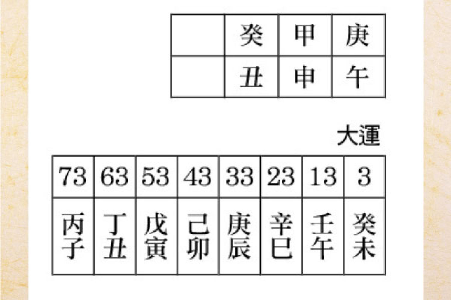 癸水日元,在申月出生,是身強。申金內藏了庚金、壬水、戊土,其中哪一個出干,在天干出現,代表那一種五行最強大。「庚」在年干出干,代表祖上輩、祖父。「申」金生水,水強,家族遺傳令她成為強勢女性,淵源來自母親的強勢。